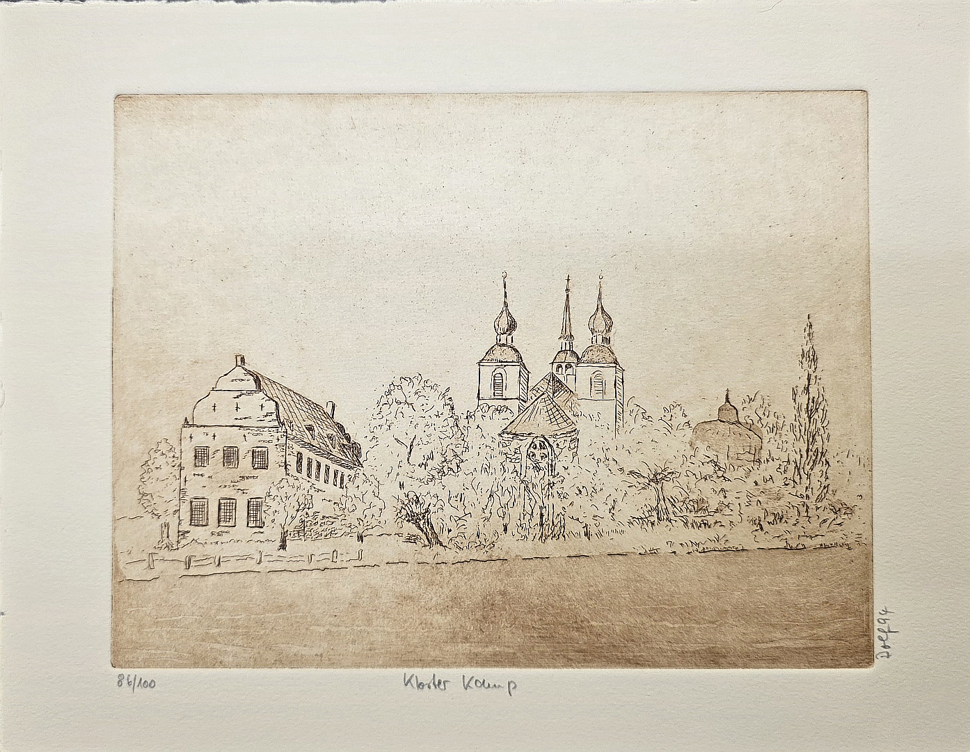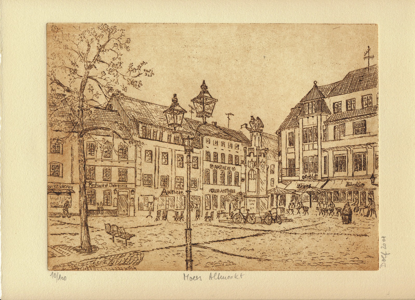 Die Bilder haben in der Regel eine Größe von 24×30 cm (Büttenpapier, handgerissen). Die Motive sind überwiegend ca. 18×24 cm groß. Die Auflage beträgt 100 Stück. Siehe auch Erklärung zu meinen Radierungen. Der Preis beträgt 70 € pro Bild. Rahmungen biete ich nicht an.